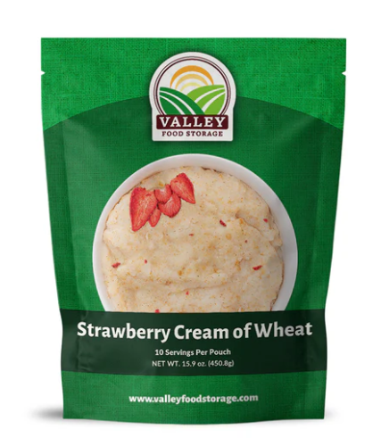 Valley Food Storage Strawberry Cream of Wheat is the best way to start the day with a hot breakfast and can be used as a healthy and delicious snack or as a dish all on its own, making it perfect for a quick and convenient breakfast or snack for the whole family. Each pouch of strawberry creamy wheat contains 10 servings.