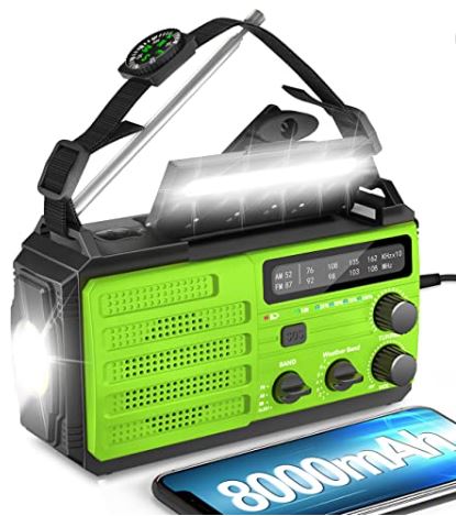 【2023 Newest】8000mAh Emergency Hand Crank Radio,AMFM NOAA Weather Alert Radio,Survival Solar Powered Radio with Super Bright Flashlight,Phone Charger,SOS Alarm,Compass for Hurricane,Outdoor Emergency
