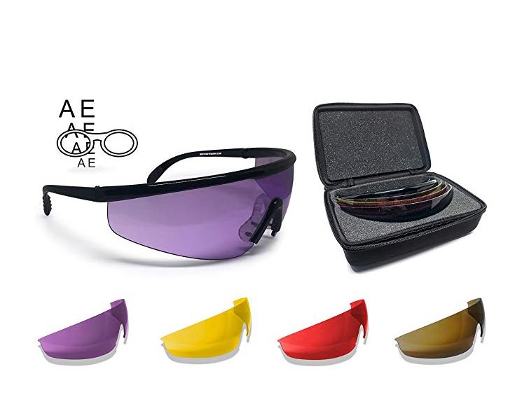 4 shooting antifog coated lenses included, let you match the light conditions: BROWN: Blocks undesirable blue light while improving contrast of the orange target – YELLOW: Best used in low light, overcast conditions – Violet: Best lens for contrast of orange targets against a deep blue sky and green background - REd: Good for shooting against green backgrounds by highlighting the orange target and neutralizing greens