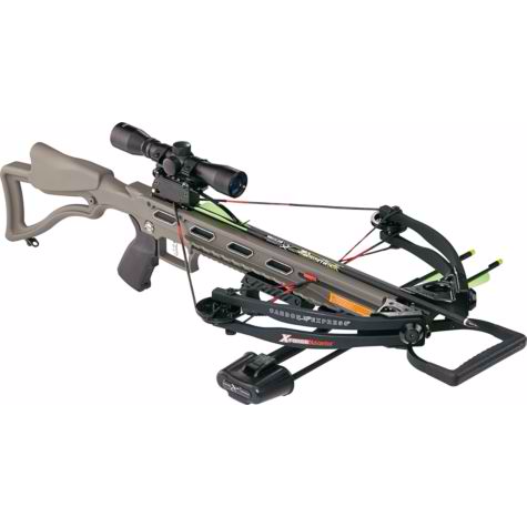 A great addition to any arsenal and perfect for shooters looking for their first crossbow, Carbon Express’ X-Force Advantex Crossbow is easy to use from the get-go. The lightweight, one-piece skeletal profile enhances balance. Compression-molded split-limb design features a rifle-like stock with SilenTech coating for greater comfort and overall stealth. Compact front end provides superior maneuverability. Adjustable fore grip offers a custom fit and adapts to any shooting style. Precision 3.5-lb. trigger pull boosts accuracy. Ambidextrous, anti-dry-fire safety technology increases security. Deluxe 4x32 multireticle scope for optimum accuracy. Delivers 91-ft.-lbs. of kinetic energy. 14.5" length of pull. Includes: crossbow, 4x32 multireticle scope, quick-detach three-bolt quiver, three PileDriver® 20" bolts, rope cocker, rail lubricant and three practice points (100-gr.).Speed: 315 fps.Power stroke: 10.5".Draw wt: 165 lbs.Length: 34".Width: 12.5" (cocked), 16.25" (uncocked).Wt: 6.9 lbs., wt. with accessories: 8.2 lbs.Color: Charcoal.