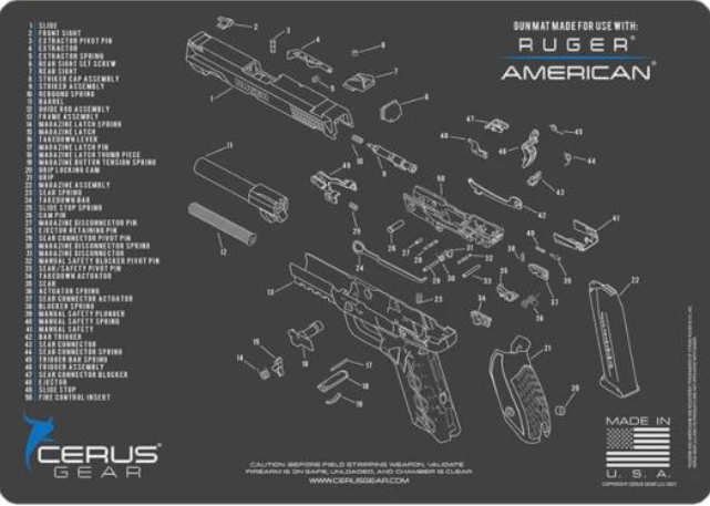 Cerus Gear Ruger American Handgun Schematic Cleaning Mat 12x17 Grey and Blue