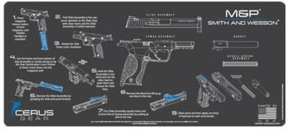 The service weapon of significant LEO agencies worldwide. Field stripping your S&W can be an exercise in patience. However, with Cerus Gear’s new M&P Instructional Promat, we’ve taken the guess work out of that task in 9 easy to follow steps. Includes lubrication points.