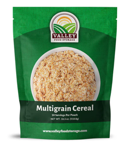 Valley Food Storage MultiGrain Dried Cereal features the best clean nutrition and can be used as a healthy and delicious snack or paired with our fortified instant milk making it perfect for a quick and convenient breakfast or lunch for the whole family. Each pouch of multigrain dried cereal contains 10 servings.