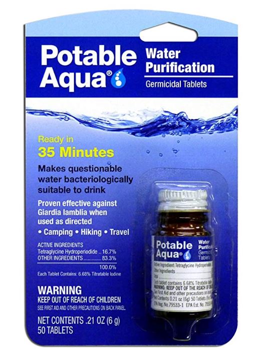 Potable Aqua Water Purification Treatment (50 Tablets) - Portable Drinking Water Treatment Ideal for Emergencies, Survival, Travel, and Camping